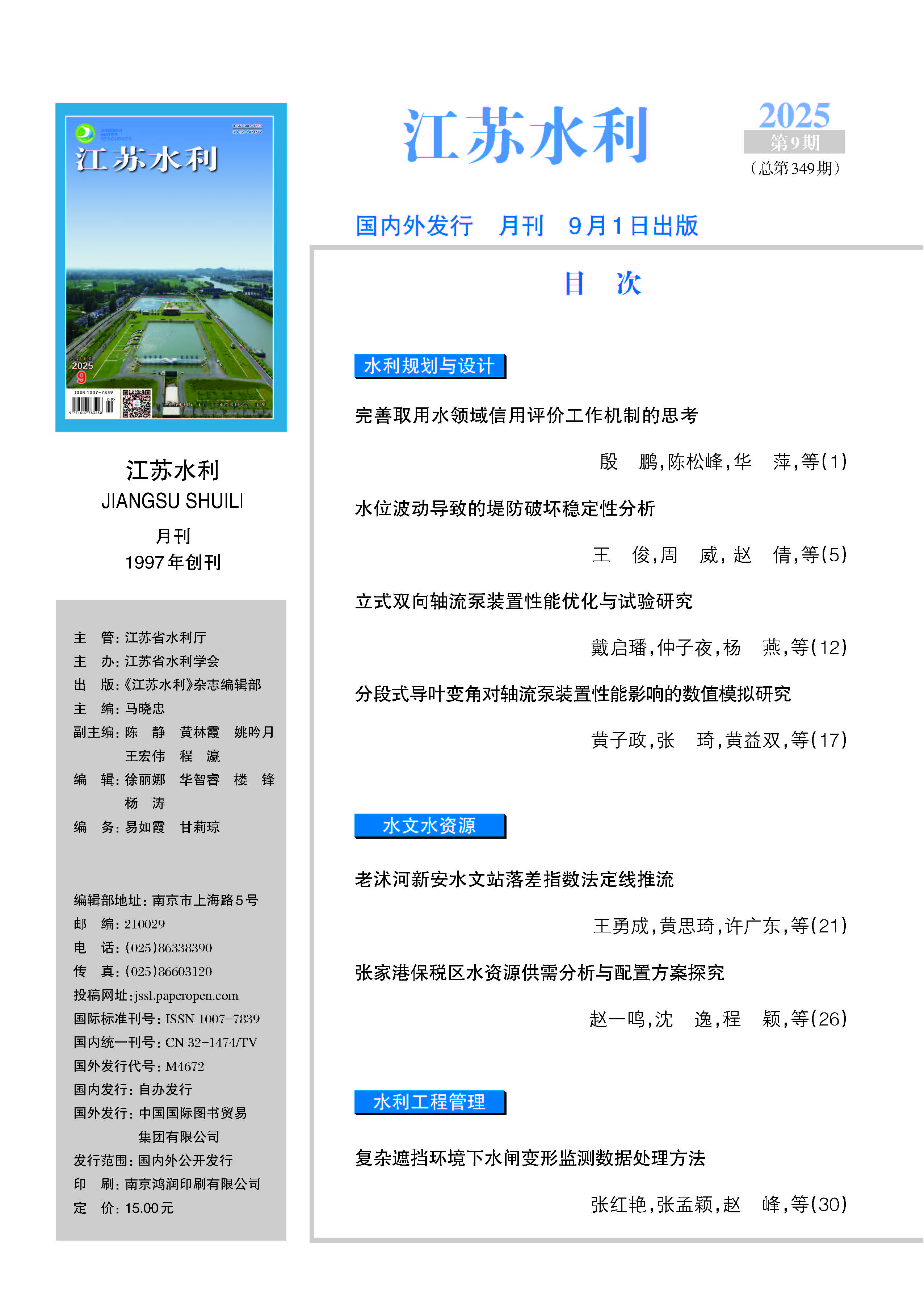 《江苏水利》投稿格式